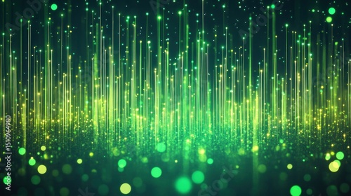 Abstract green glowing lines and particles background.