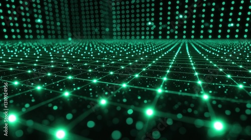 Abstract Green Grid: Digital Network, Futuristic Technology, Virtual Reality