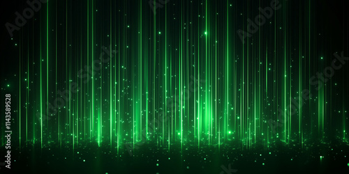 Abstract Green Light Rain with Sparkling Particles on a Dark Background
