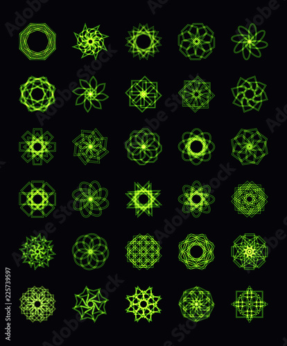 Abstract green neon shape and fractal collection in vector