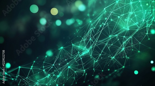 Abstract green plexus design on dark background.