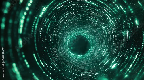 Abstract Green Swirling Lights Tunnel Background