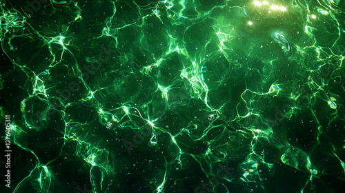 Abstract Green Water Surface with Sparkling Light Refraction Patterns Background