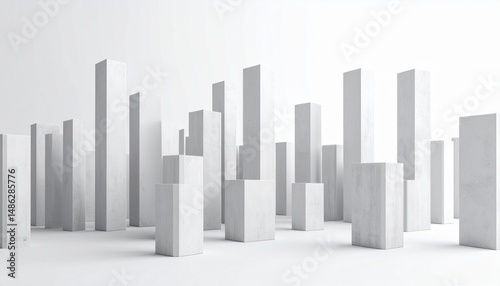 Abstract Grey Concrete Cityscape Geometric Columns and 3D Variations