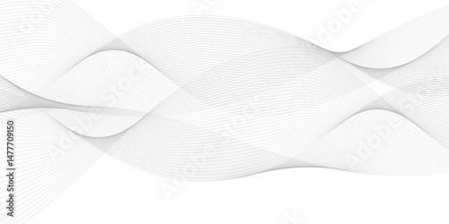 Abstract grey smooth element wavy modern curve lines on transparent background. Digital frequency track equalizer. Abstract frequency sound wave lines, twisted curve lines and technology background.