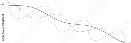 Abstract grey wave lines on transparent background. Technology, data science, geometric border pattern. Isolated on white background. Vector illustration.