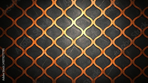 Abstract grunge background with a repeating pattern of interweaving gold lines.