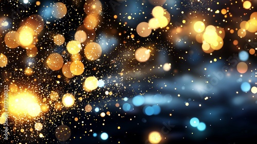 Abstract grunge background with defocused gold glitter sparkles, blending into a dreamy night scene, Main Keyword: Abstract night scene, Concept: Urban fantasy