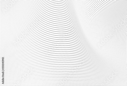 Abstract halftone background. Monochrome grunge pattern of dots. The waves are smooth and chaotic. Pop art texture for business cards, posters, labels, business cards