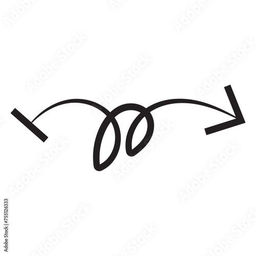 Abstract hand drawn arrow. Wavy pointer. Design element for application user interface. Cartoon simple linear vector illustration in doodle style on white background in eps 10.