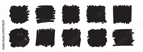 Abstract hand drawn scribble set art. Vector grunge brush square. Sketch graphic design isolated on white background.