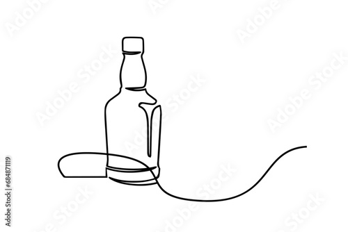 Abstract hand drawn wine bottle vector one line continuous drawing illustration. Minimal design element for print, banner, card, wall art poster, brochure, product logo