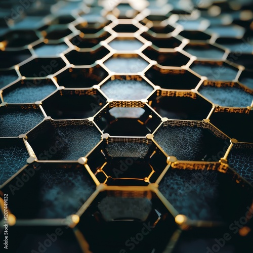 Abstract Hexagon Background Gold Black 3D Geometric Technology Network Pattern Des