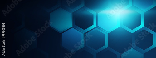 Abstract hexagon blue background banner futuristic business data technology modern concept, polygon shape dark blue contrast copyspace.