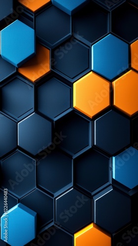Abstract Hexagon Pattern Blue Orange Dark Gray 3D Background