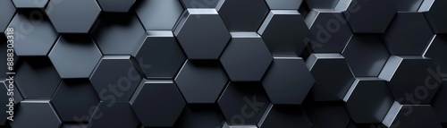 Abstract Hexagon Pattern 3D Rendered Black Geometric Wall, 3D, abstract, geometry, hexagon