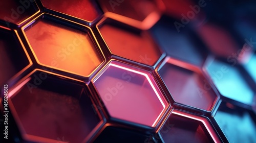 Abstract Hexagon Pattern Background Red Blue Neon Lights Technology Design