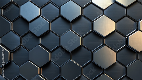 Abstract Hexagon Pattern Dark Grey Metallic Geometric Background
