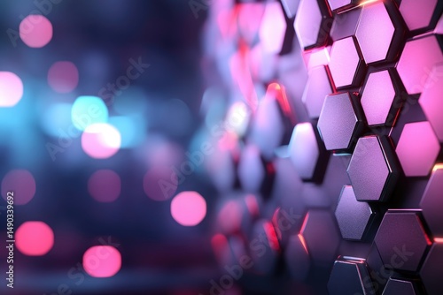 Abstract hexagon pattern with bokeh lights background for modern designs