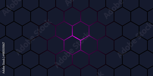 Abstract hexagonal metal background with red light. grey and violate hexagons modern background illustration.
