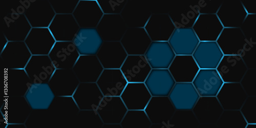 Abstract Hexagonal Network – Technology and Innovation Theme. Digital Blue Hex Grid – Sci-Fi and AI Concept. Hexagon. Illustration. Vector.