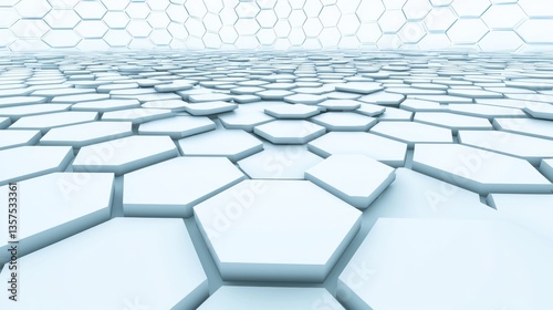 Abstract hexagonal pattern, interior perspective, white, futuristic
