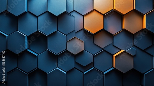 Abstract hexagonal pattern with a blend of blue and orange tones.