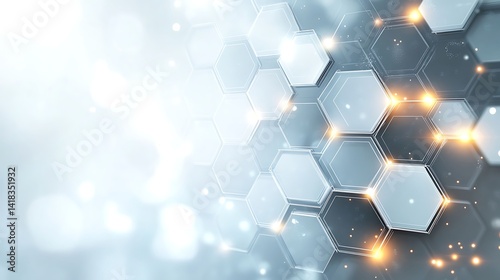 Abstract Hexagonal Pattern with Glowing Lights, Abstract hexagonal pattern with glowing lights on a blue background