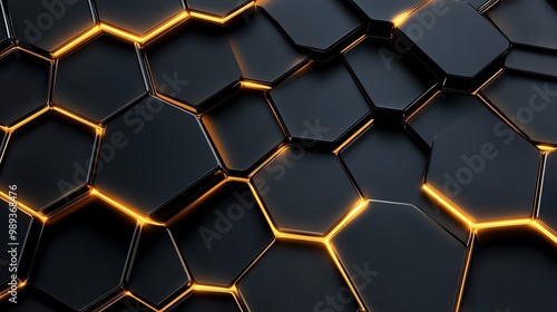 Abstract hexagonal pattern with glowing orange edges and a sleek black background, perfect for modern design projects.