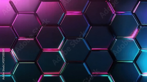 Abstract hexagonal pattern with neon glow.