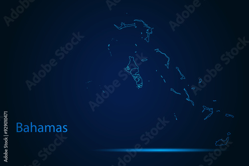Abstract High Detailed Glow Blue Map on Dark Background of Map of Bahamas symbol for your web site design map logo, app, Travel. Vector illustration eps 10.