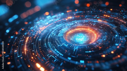 Abstract high future tech blue technology background of a quantum cyber network