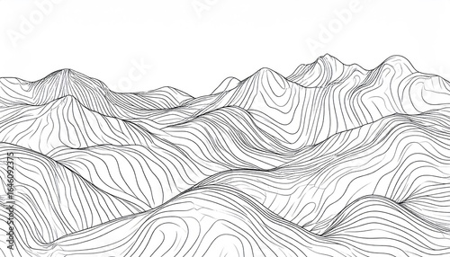 Abstract Hill Pattern in Contour Line Art Design on White Background with Black Lines