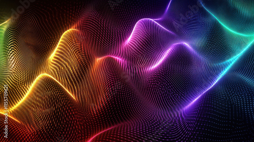 Abstract holographic texture with prismatic rainbow waves, creating vibrant and dynamic visual effect. colorful patterns evoke sense of movement and energy