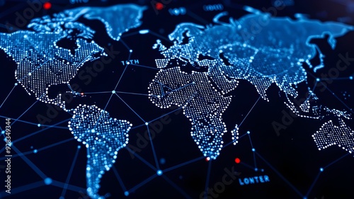 Abstract holographic world map with many connection points symbolizing social media and life for business wallpaper background