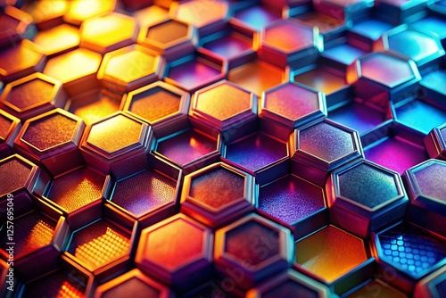 Abstract Honeycomb Pattern with Vibrant Color Gradients and Deep Shadows - Stock Photo