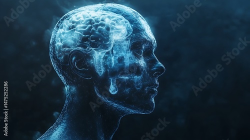 Abstract human head with digital neural pathways illuminated by blue light picture