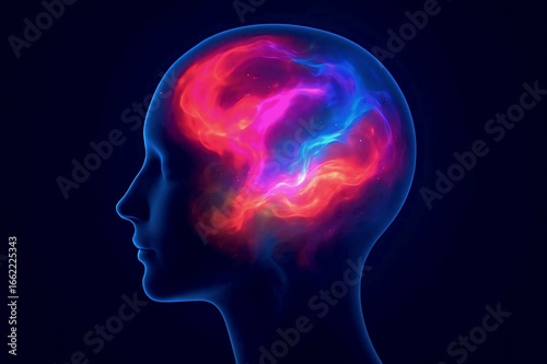 Abstract Human Mind with Cosmic Energy Inside Head – 3D Artistic Render