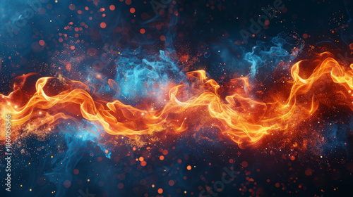 abstract illustration fire explosion glowing with a dazzling inferno of glittering heat and swirling smoke, embodying the elemental power