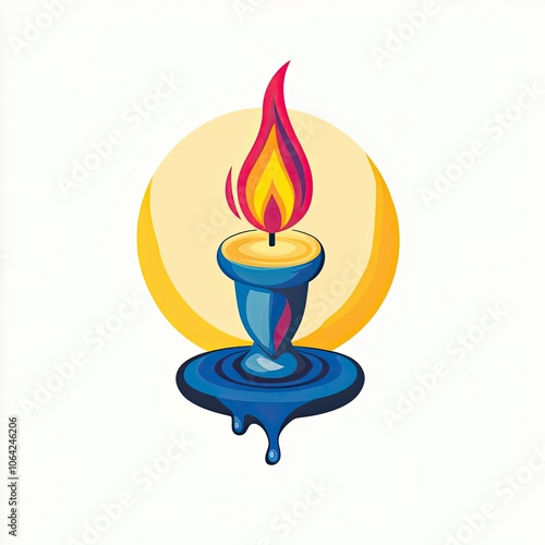 Abstract Illustration of a Burning Candle with Dripping Wax