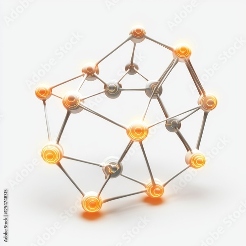 Abstract illustration of a three-dimensional geometric structure with glowing nodes and interconnected lines against a light background