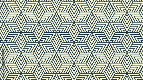Abstract illustration of black striped abstract geometrical shapes in seamless pattern against white