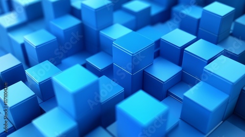 Abstract illustration of blue 3D cubes in a minimalist isometric perspective, with varying shades of blue to create depth and interest. The HD image highlights the geometric precision.