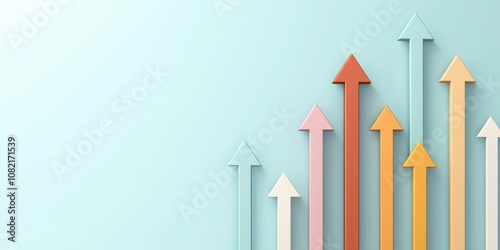 Abstract illustration of colorful arrows pointing upwards against a light blue background, symbolizing growth, success, and progress.
