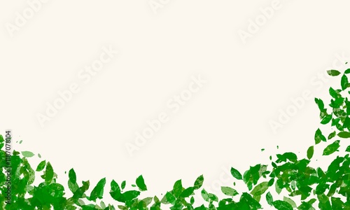 Abstract illustration of fresh green leaves forming a natural border on a light beige background, evoking a springtime vibe.