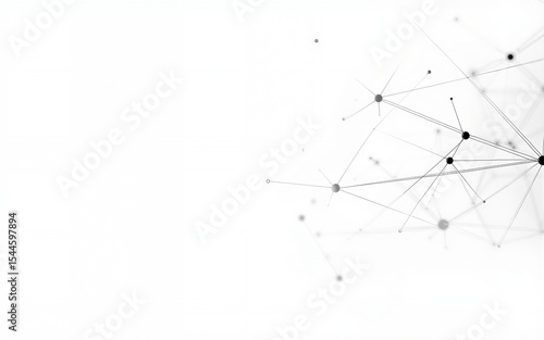 Abstract illustration of interconnected nodes, lines on white background. Digital data flow concept, representing connection, communication, innovation. Dynamic network topology, futuristic design,