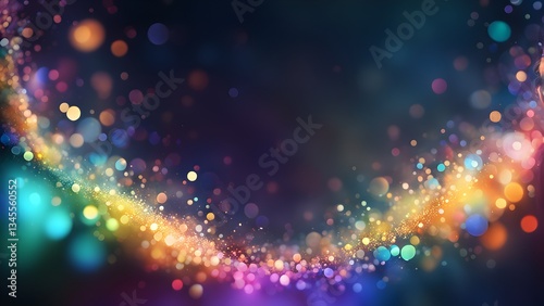 Abstract image colorful bokeh lights forming a wave-like pattern a dark background. Perfect festive designs celebrations.