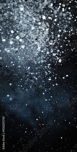 Abstract image depicting scattered particles against a dark background, suggesting depth and motion.