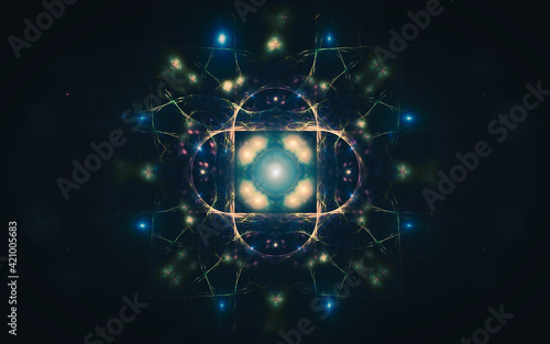 abstract image illustration of a fantastic glowing mystical crystal on a black background for symbol or emblem use