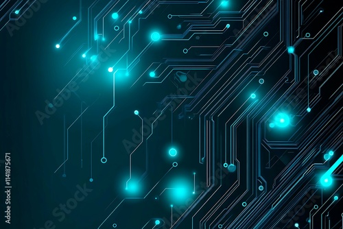 Abstract image of a glowing futuristic circuit board featuring neon blue lines, digital patterns, and intricate technology-inspired details.